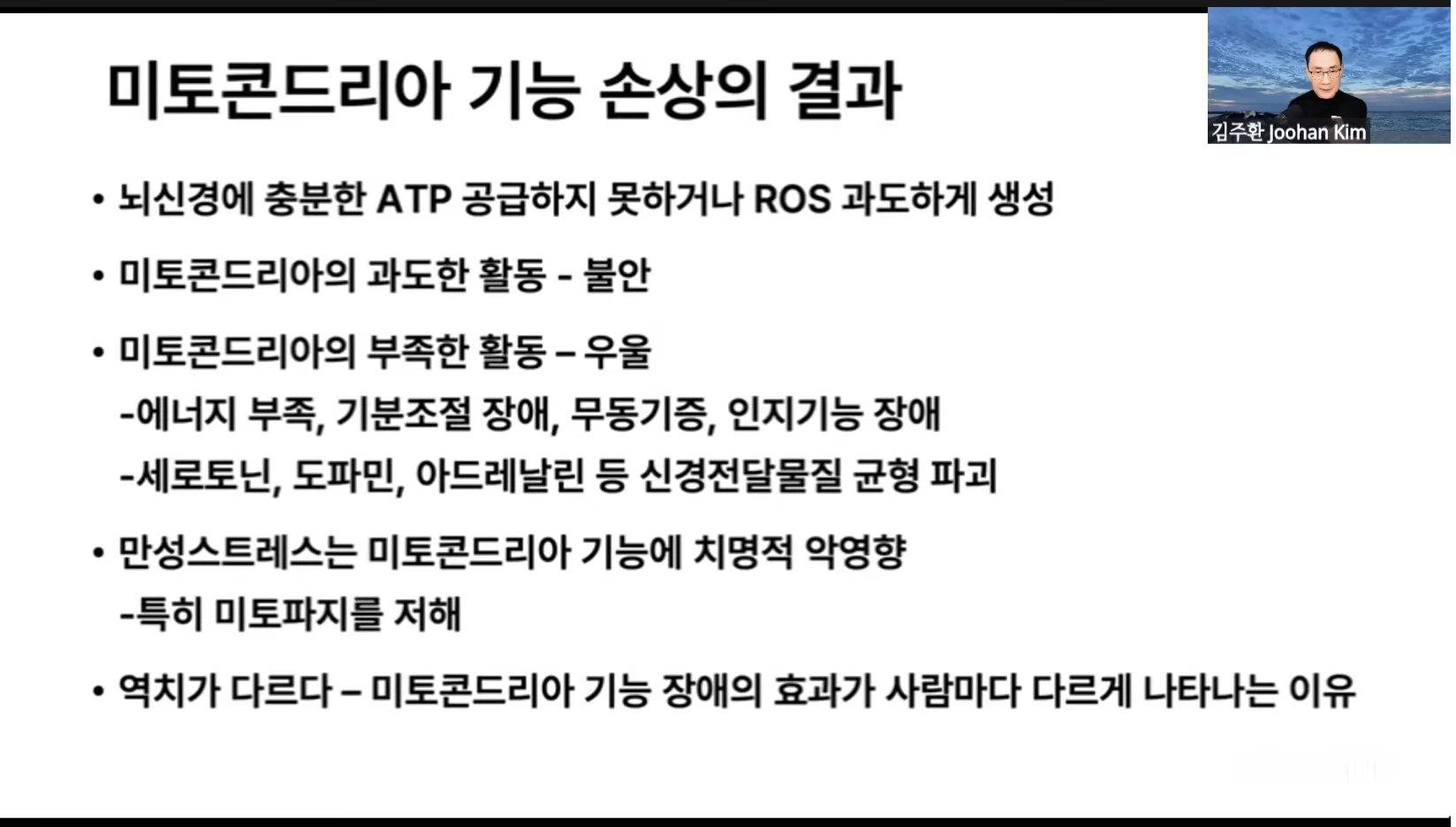 - 세포의 엔진은 미토콘드리아 인데 뉴런에서 미토콘드리아가 제대로 작동하지 않으면 문제를 일으킬 수 있다.