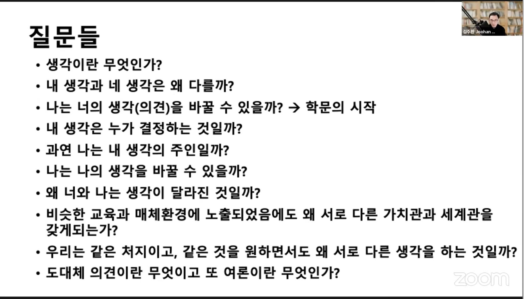 - 많은 사람들이 내 생각이 내것이라고 착각한다. 여러가지가 주입된거다.