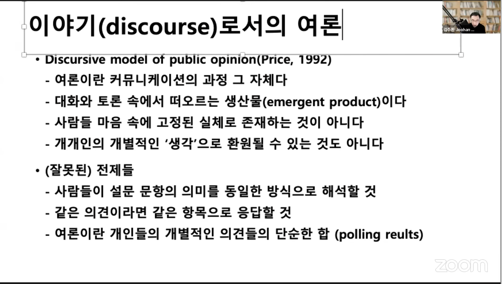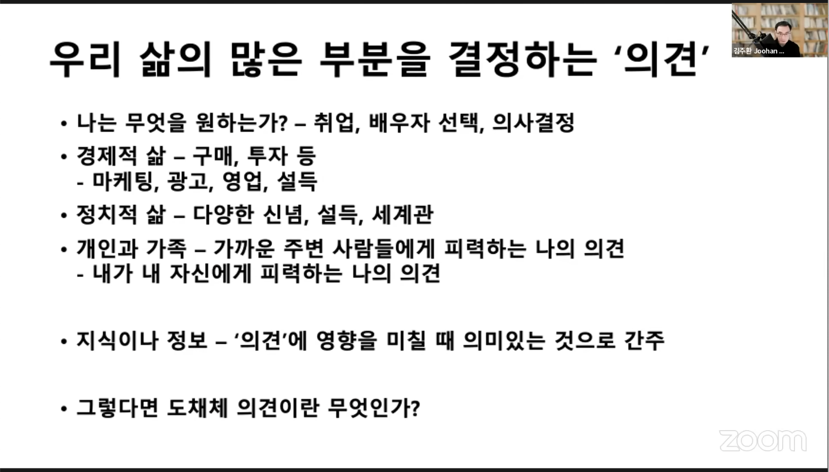 - 인간의 머리 속에는 고정된 실체로서의 의견이 없다.