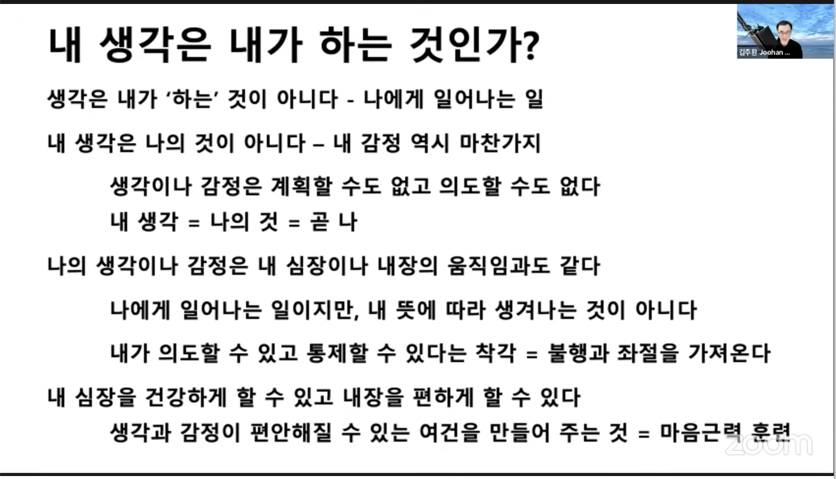 - 내 생각은 내 것이 아니고, 내 감정도 내 것이 아니다.