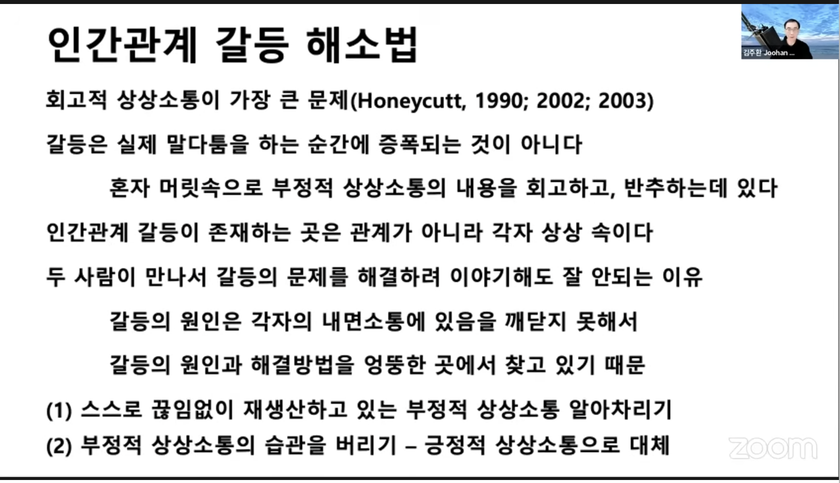 - 부정적 상상소통을 알아라치는 것만 해도 문제의 90%가 해결 될 수 있다.