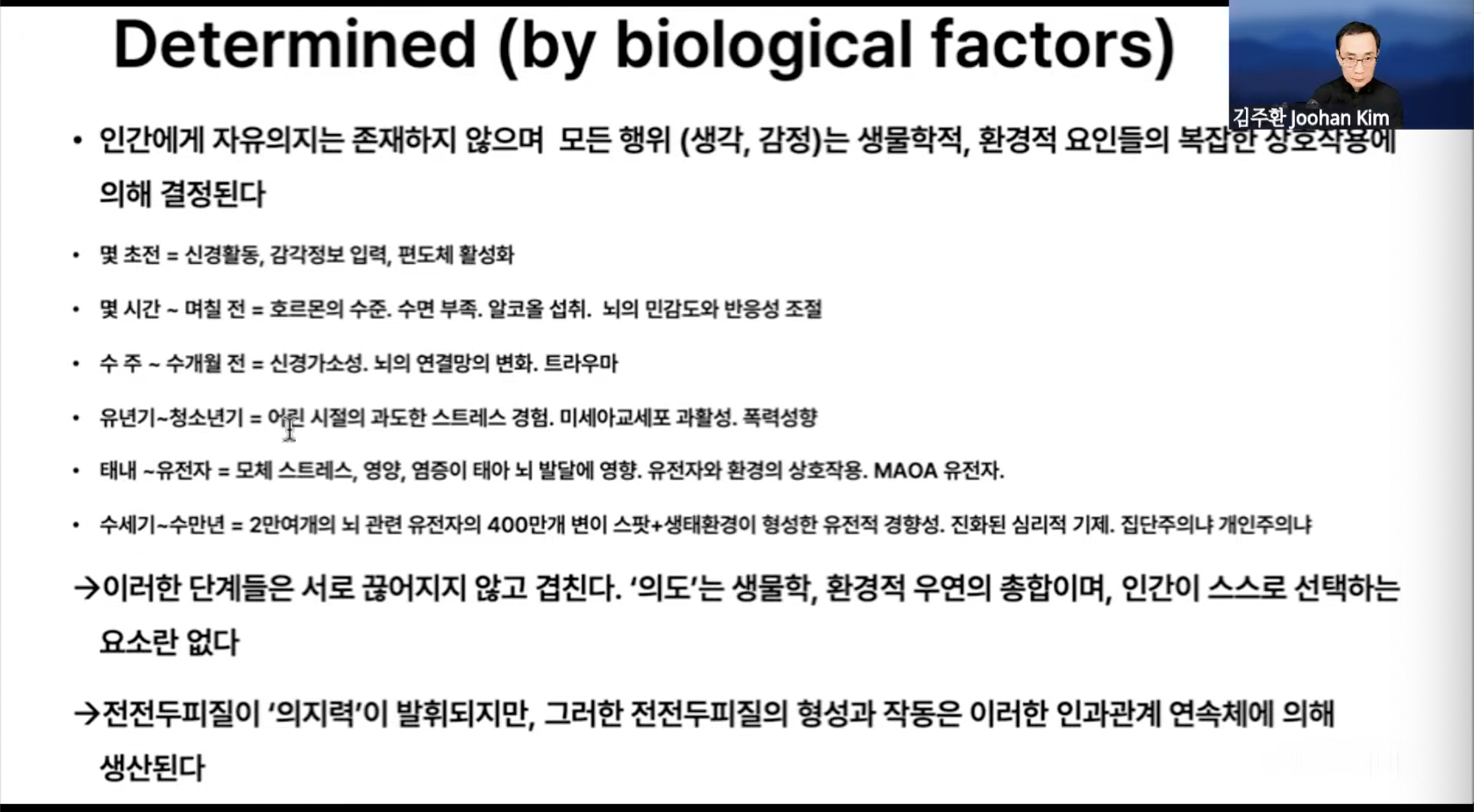 - 자유의지가 없으니까 악마가 사라진다. 위험군은 있을 수 있고, 치료해야할 사람은 있지만 응징해야하는 사람은 없다.
