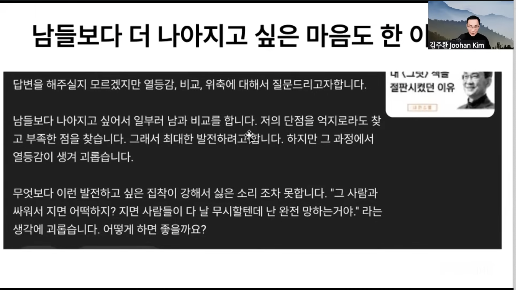 | [김주환 교수의 유튜브 강의] 삶의 평온함을 찾는 법 (1) | 2025.07.17 |