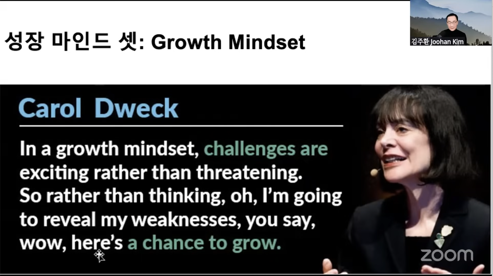 - 성장 마인드 셋 반대는 고정 마인드 셋