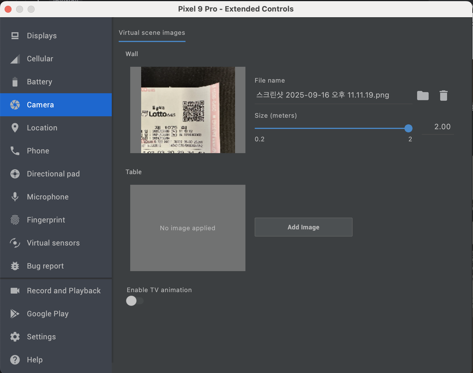 Camera를 선택하여 Wall 또는 Table에 Add Image를 클릭하고 테스트 하고자 하는 이미지를 넣어 준다.
