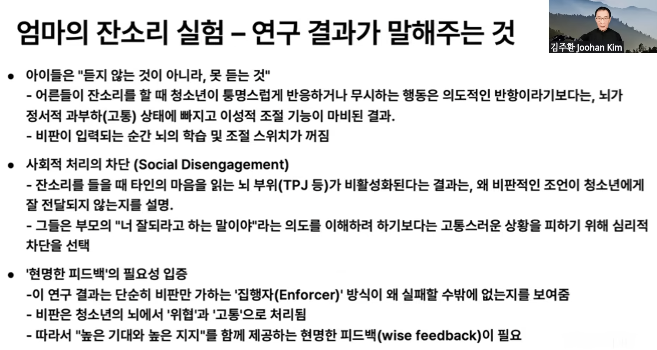 잔소리는 상대방의 입장을 이해하려는 것을 shut down 해버린다. 말을 안듣는게 아니라 못듣는거다.
