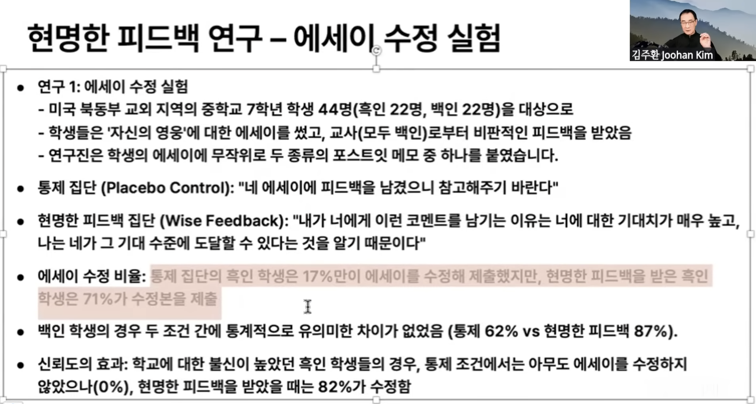 | [김주환 교수의 유튜브 강의] 불안의 이유와 자기불리화에 대하여 (3) | 2025.07.21 |