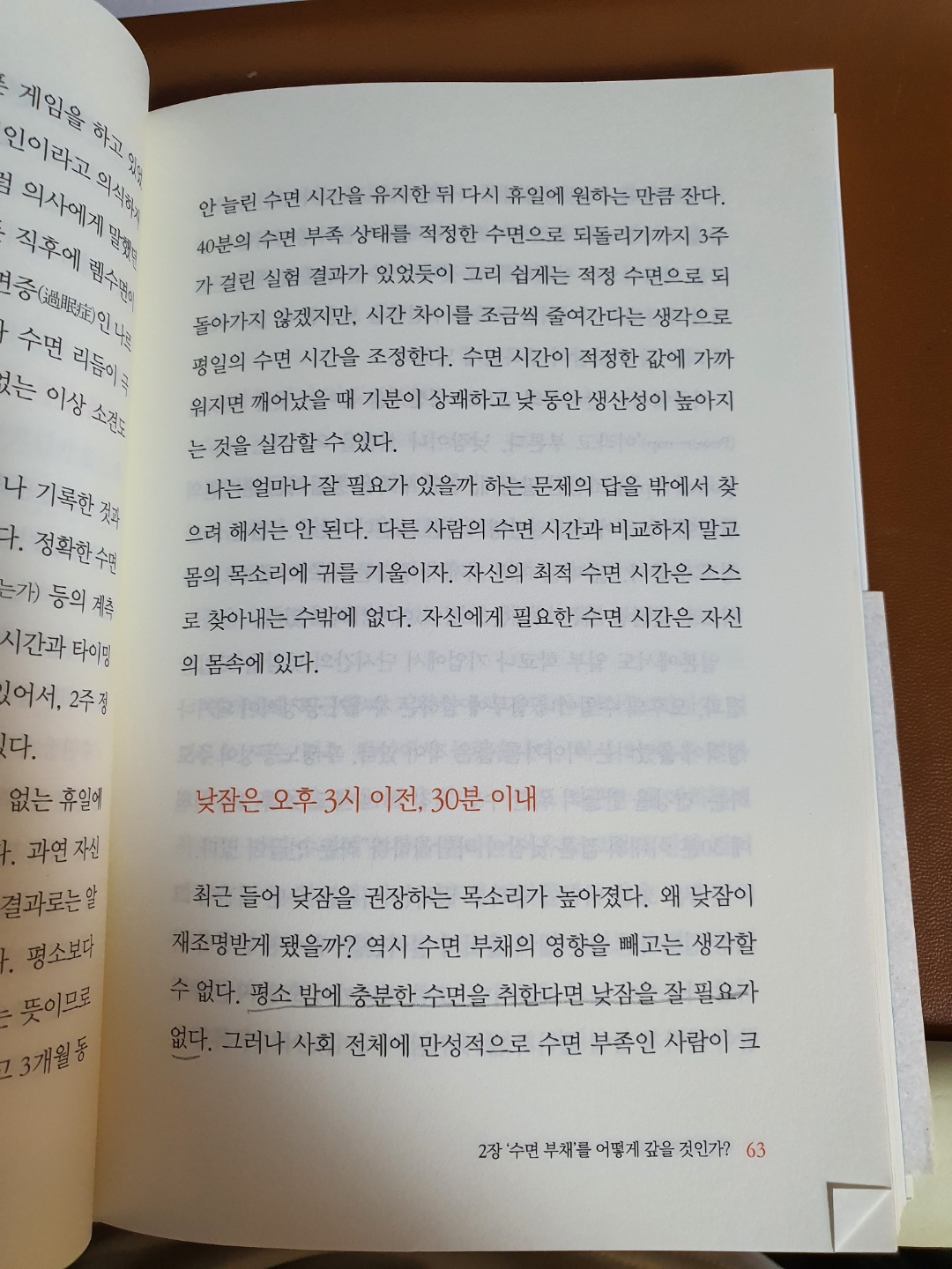 P63 : 평소 밤에 충분한 수면을 취한다면 낮잠을 잘 필요가 없다.