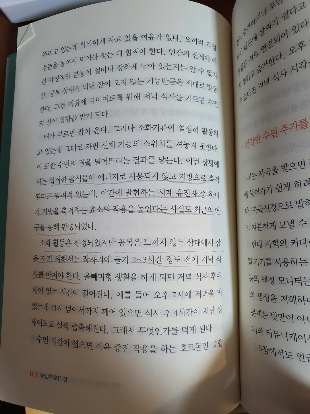P180 : 소화활동은 진정되었지만 공복은 느끼지 않는 상태에서 잠을 자기 위해서는 잠자리에 들기 2~3시간 정도 전에 저녁 식사를 마쳐야한다.