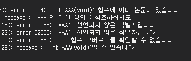 이미 AAA()라는 함수명을 가진 함수가 존재하는데 한번더 정의 했기 때문에 사용할 수가 없다.