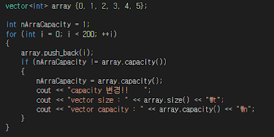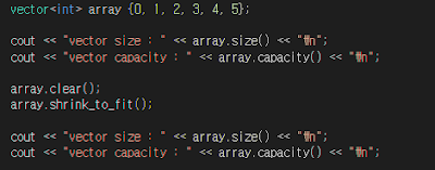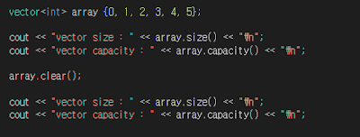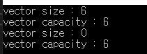 size는 0으로 변경되었으나 capacity는 결과 값이 그대로 유지됨을 볼 수 있다.