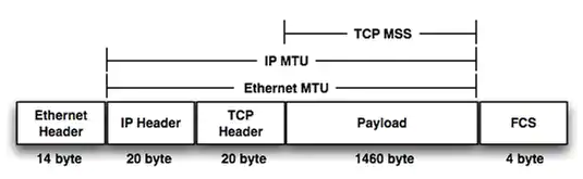 즉, Ethernet에서 MTU값은 1500byte이다. Ethernet 프레임 헤더와 트레일러는 제외되며, 이는 인터페이스가 1500byte보다 큰 프레임을 전달할 수 없다는 것을 의미한다. Windows의 기본 MTU는 1500byte로 설정되어있다.