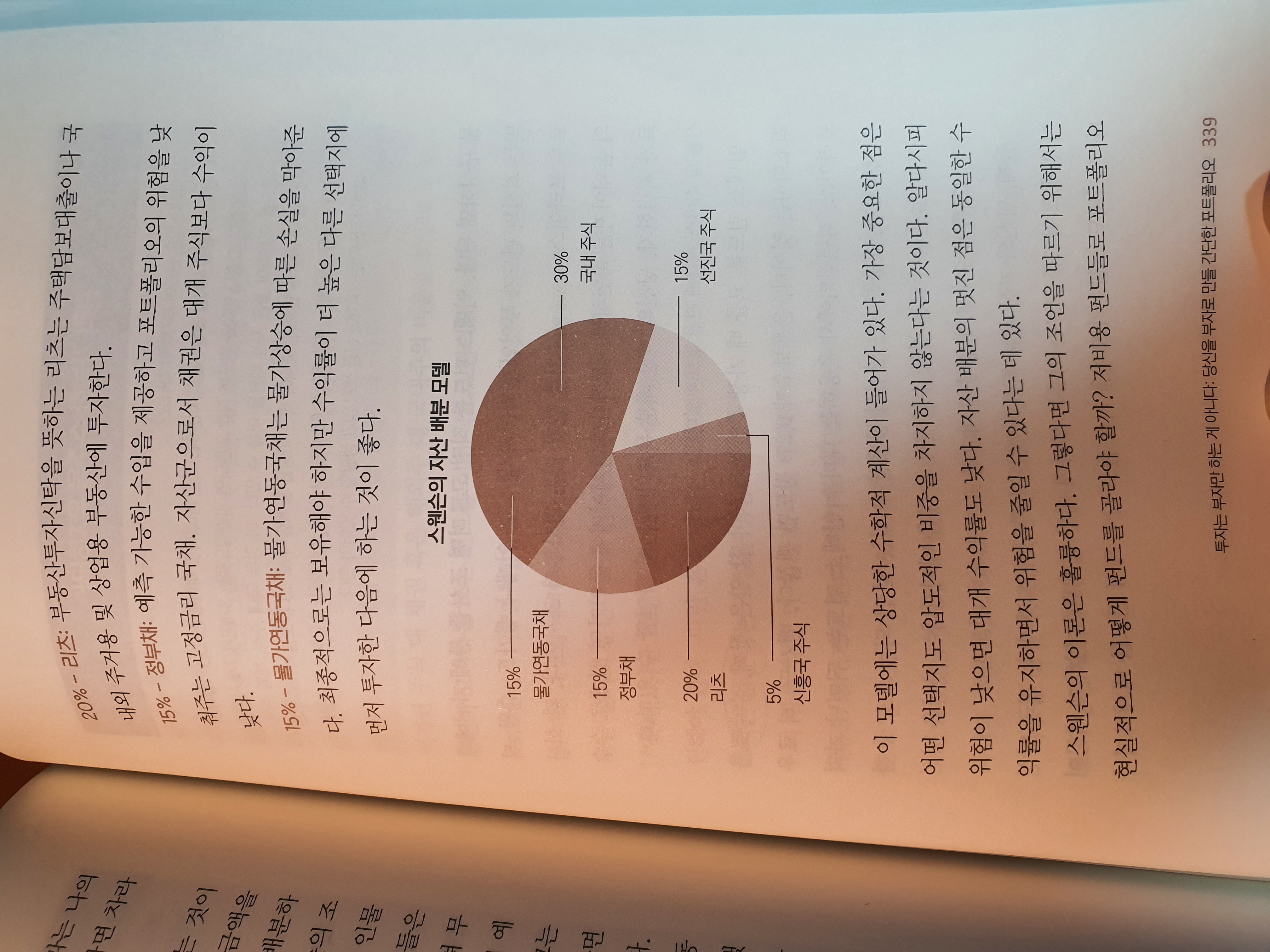 그리고 우리가 자산분배를 어떻게 진행해야하는지 스웬슨 모델을 이용하여 설명해주면서 스웬슨이 어떤 사람인지 알게되었고 자산분배에 대해 자동적으로 관심이 생겨날 수 밖에 없게되었다. 이 책을 읽어내려가면서 나는 진정 투자가 뭔지 모르고 있다는 것과 이 책을 읽어서 다시 제대로 된 재테크를 살수 있게 된것에 감사함을 느꼈다. 누군가의 수십년이 녹여있는 투자 철학과 방법을 쉽게 책으로 접할 수 있는데 나는 그저 ‘그런 것 보다 내 감이 더 좋다’ 라는 생각에 사로잡혀 지금까지 투자를 아니 투기를 했다는것에 반성을 하게 된 책이다.