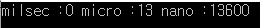 cout<< " micro :" << microsec.count() << " nano :" << nanosec.count()<<endl;